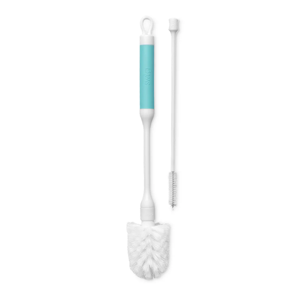 Reach every nook and cranny with Swig Life's bottle brush cleaning set! Sturdy bristles thoroughly clean the inside of bottles, tumblers, and mugs without scratching. The silicone grip handle is easy to hold and features a hook for hanging to dry. The straw brush can be used on any bottle or tumbler straw and is great for cleaning smaller accessories.