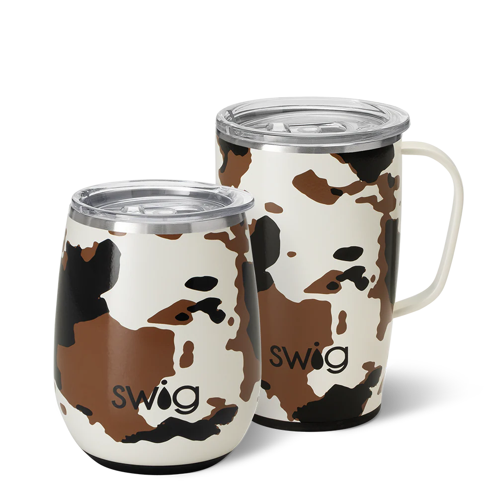 A set of Swigs for day and night! Add a little "yeehaw" to your day with this cowhide print!