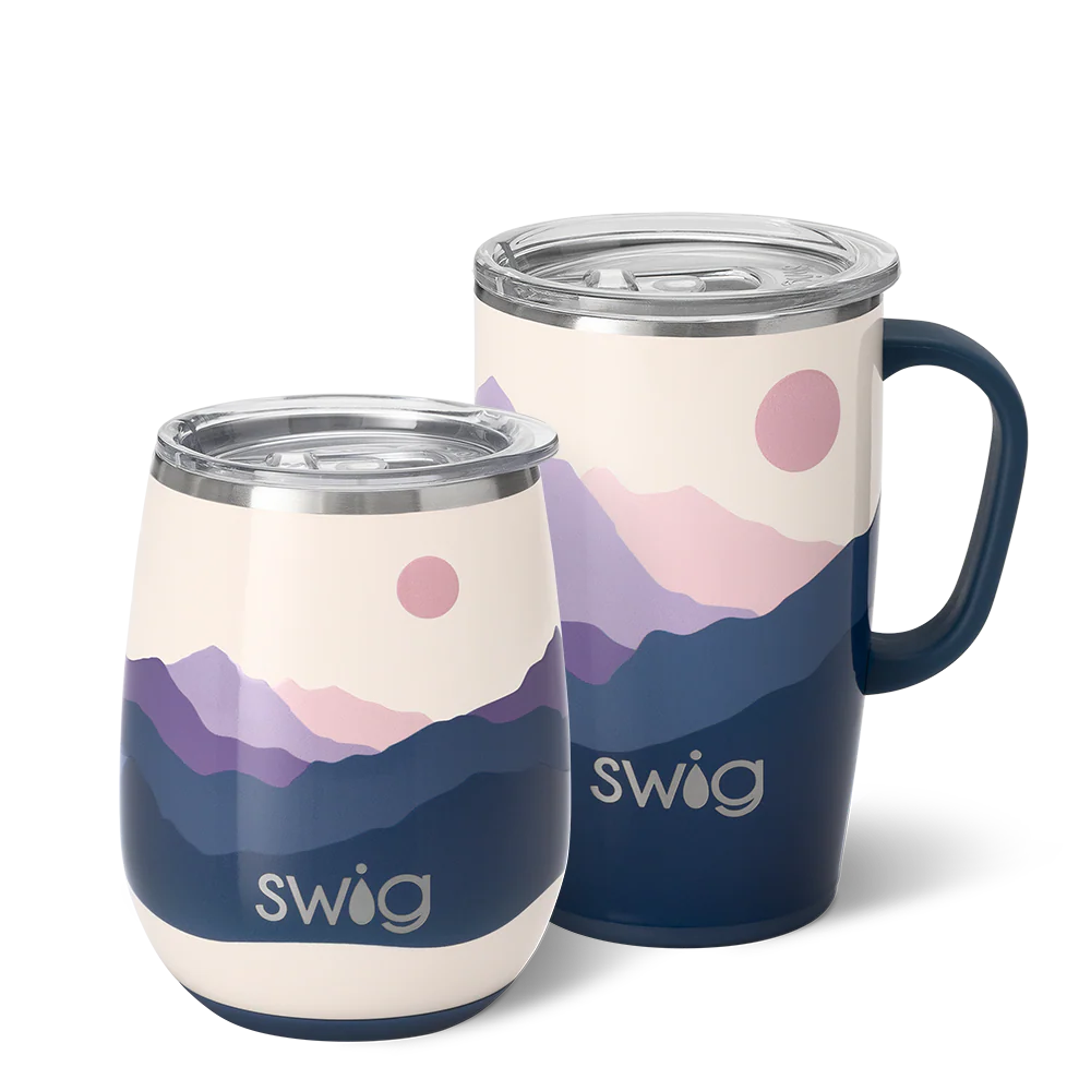 Start and finish your day with two of our best-selling Swigs. The Travel Mug will keep coffee hot through your commute, and then some! And the Stemless Wine Cup will keep your rose perfectly chilled all evening long.