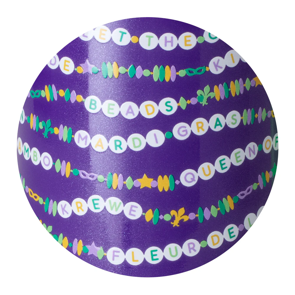The perfect traveling companion! šāāļø Cue the beads! Embrace your Mardi Gras Era with these festive friendship bracelets on glitter lilac background.