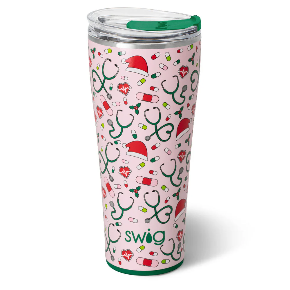 Bigger really is better! 💯 Give the perfect gift for nurses on the nice list this year with a festive Christmas cheer design on a light pink glitter background.