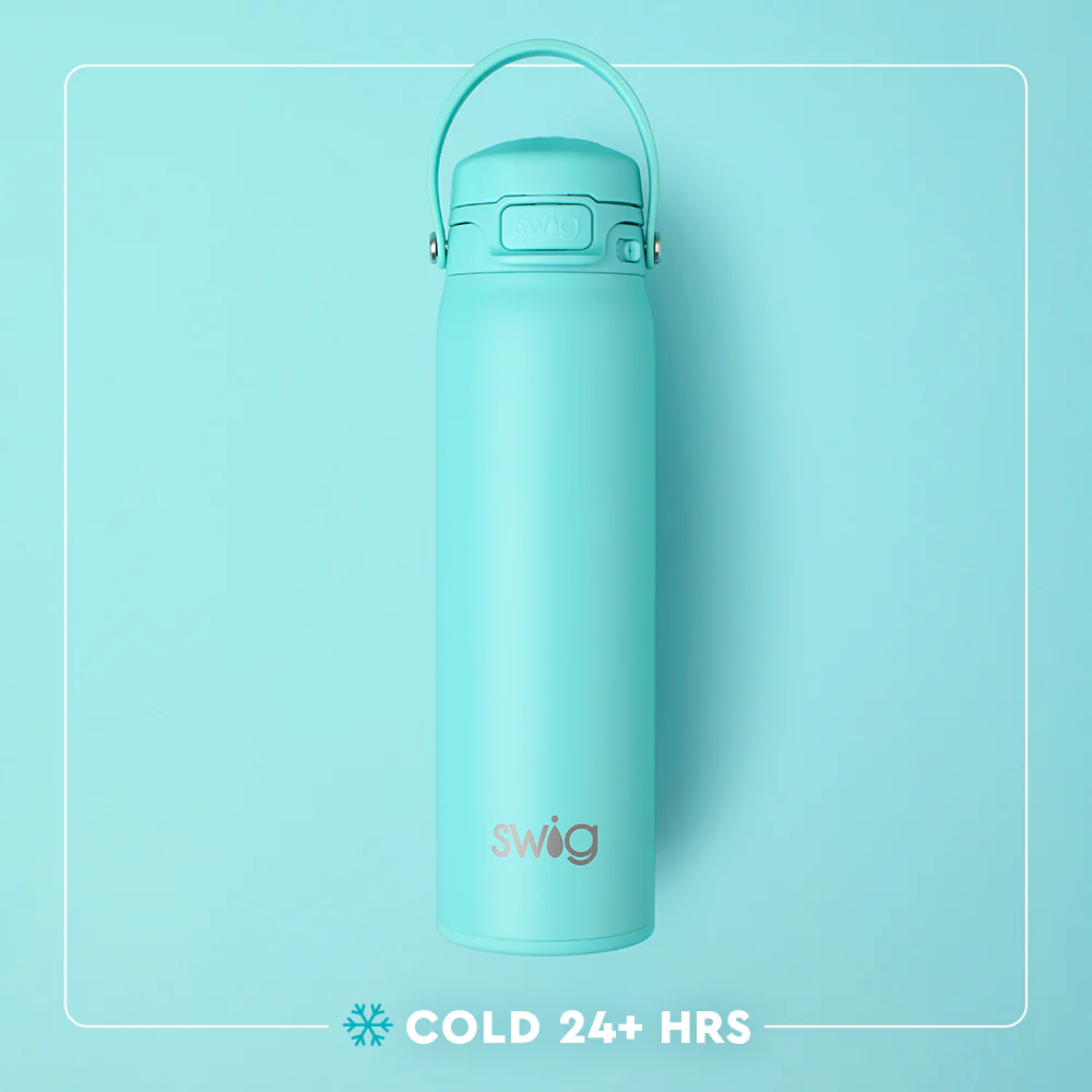 This innovative push-button cap with locking mechanism makes hydrating on the go leak free and worry free. Pop open the top to easily sip and flip open the cap to refill without the inconvenience of twisting it off. The innovative lid design gives you the option to sip freely or chug quickly. Grab-and-go flex handle is convenient for carrying on hikes and hooking in lockers.