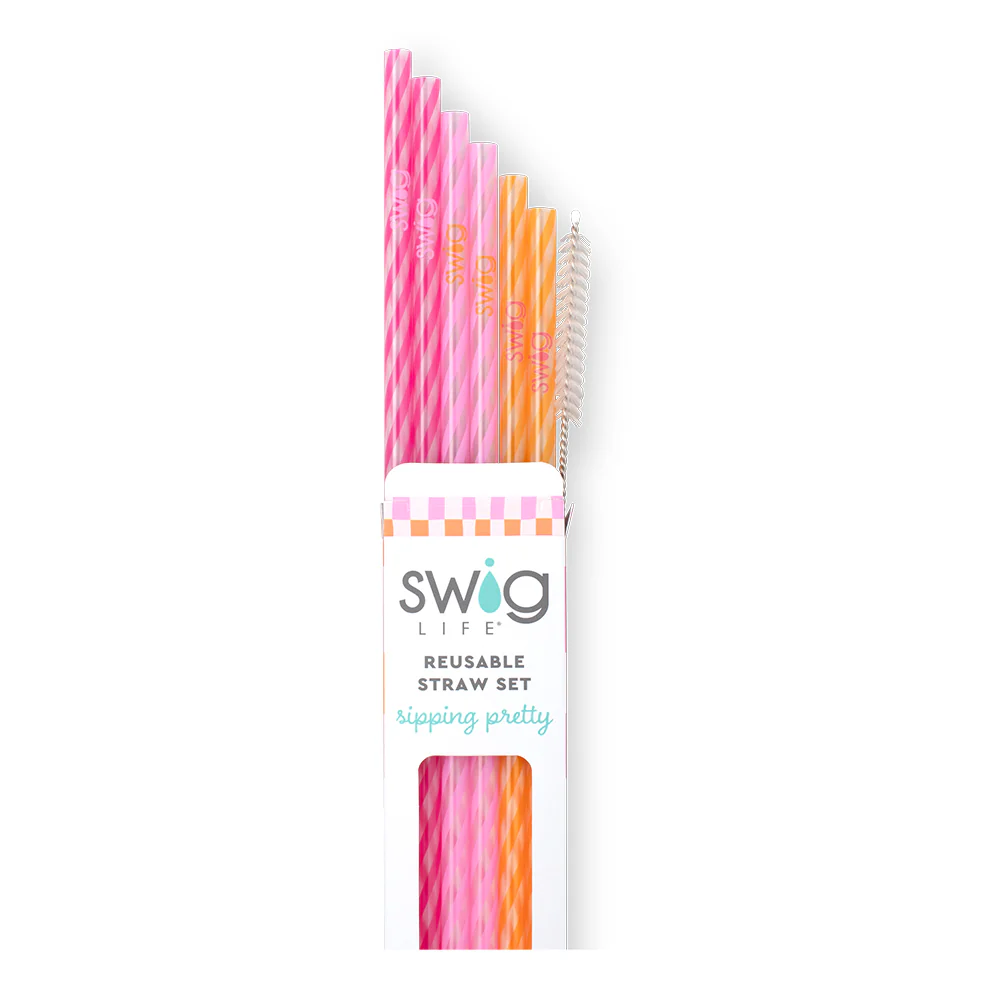 Eliminate the need for single-use straws and sip with our reusable straw sets. Go eco-friendly and add printed straw sets to your Swig order for the ultimate sustainable routine!