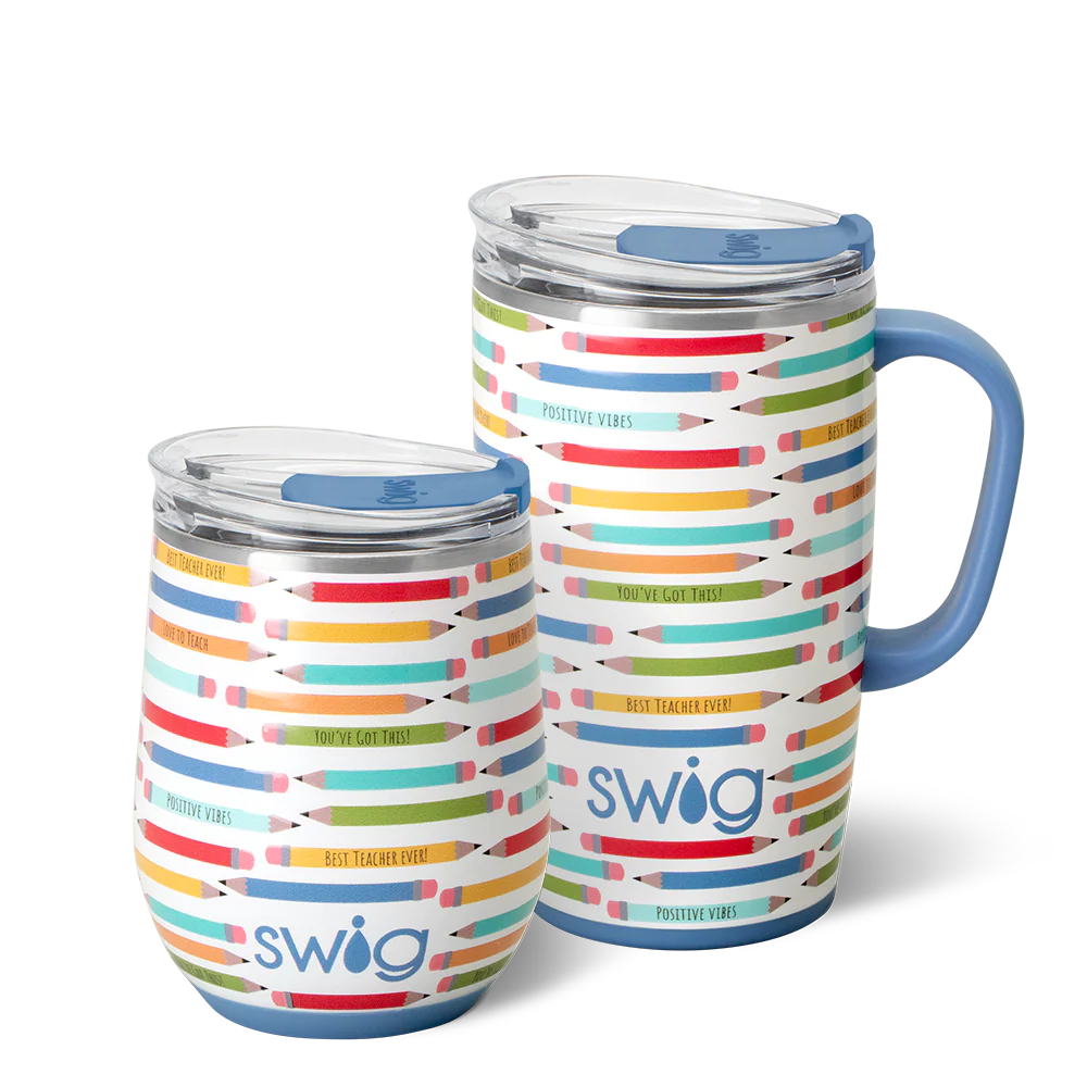 A set of Swigs for day and night! Teach, sip, repeat! Colorful pencils with words of appreciation make the perfect Teacher gift.