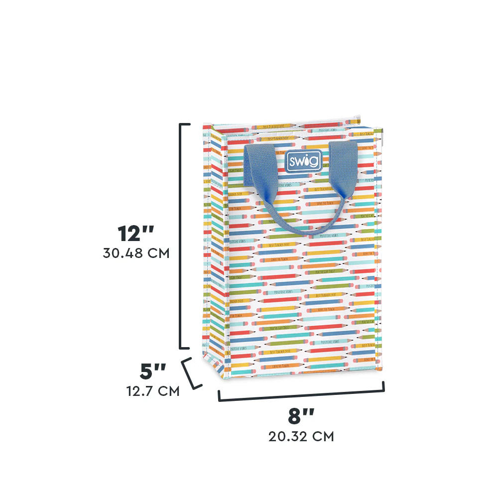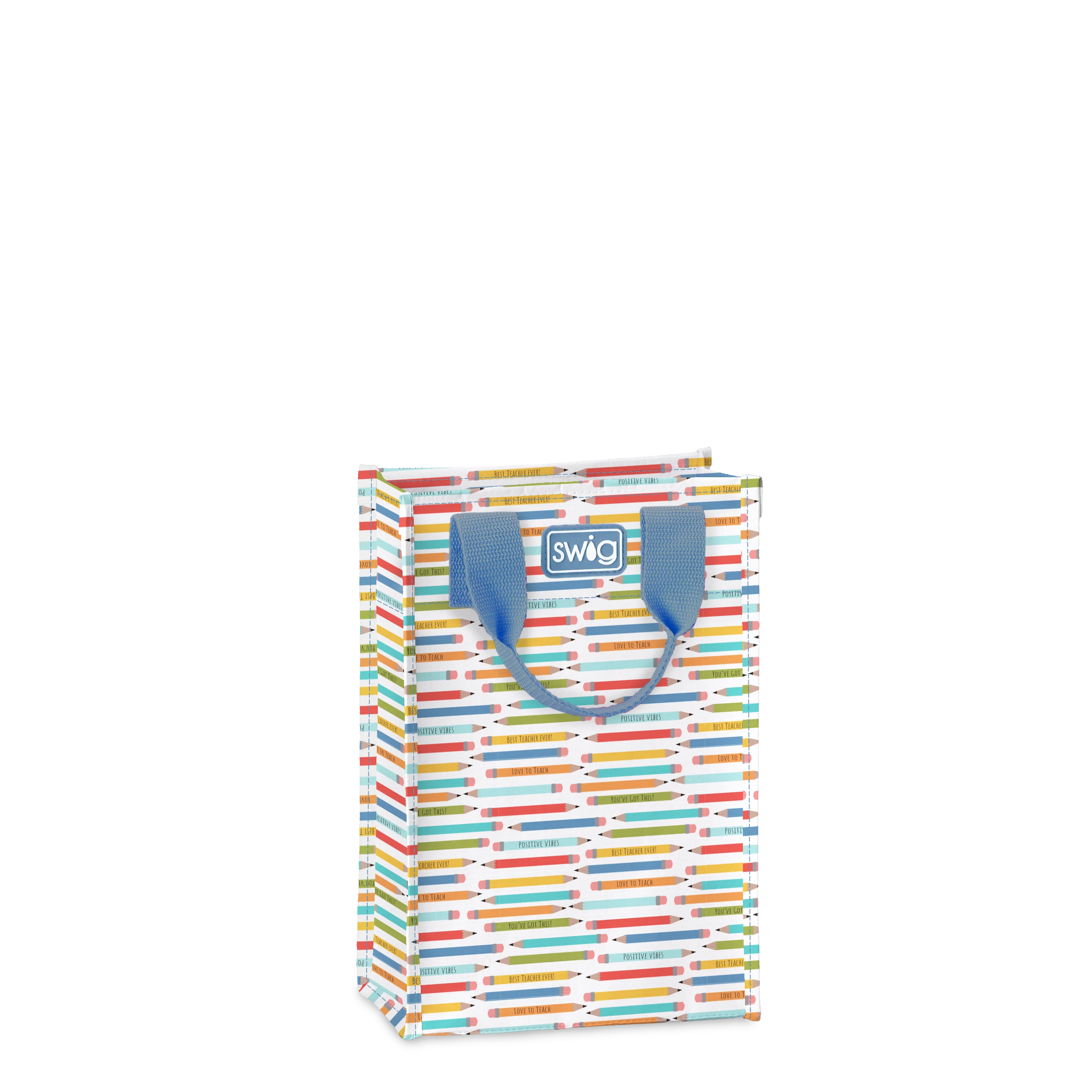 Swig Life's Reusable Bags are perfect for all of life's celebrations; birthdays, weddings, and holiday parties, and are a go-to favorite for everyday use. This tall reusable bag is ideal for medium-sized gifts, like slippers or gloves and scarves, and can be used to gift our Mega Mugs and accessories. Pack this for girl's night; it fits two wine bottles and two Stemless Wine Cups!