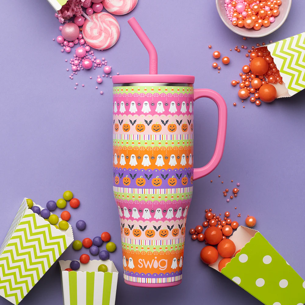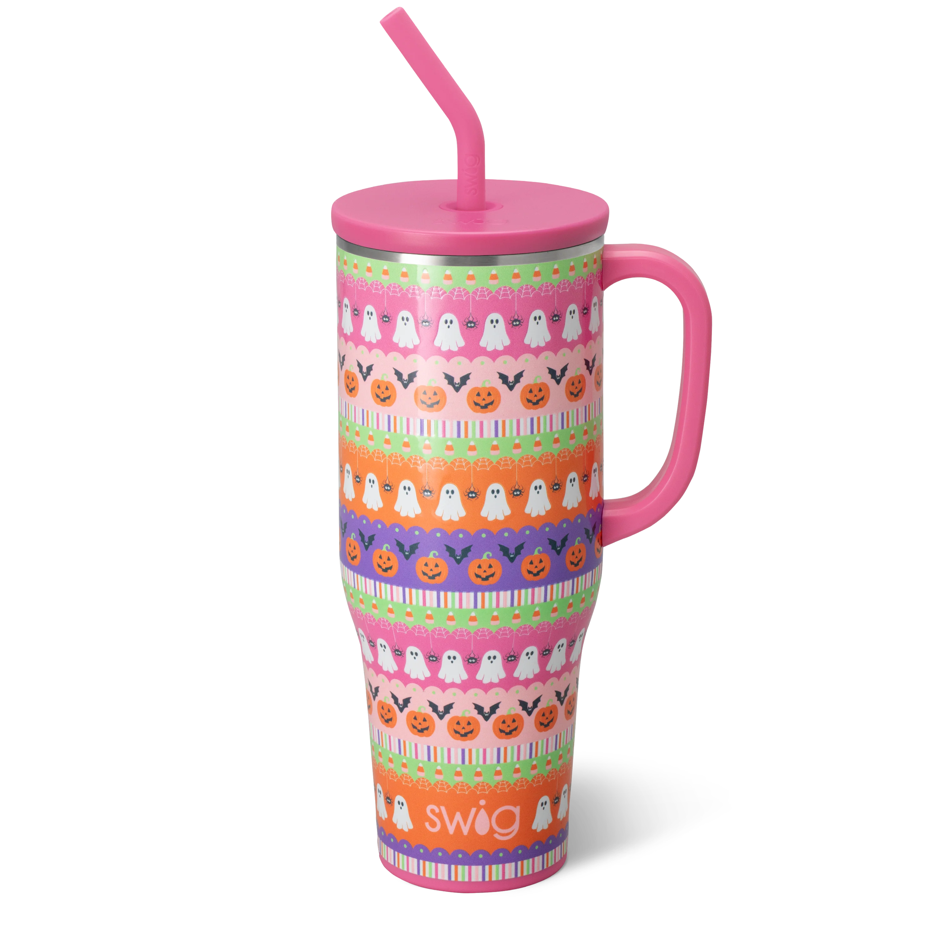 Hydrating has never been easier with our 40oz Insulated Mega Mug! A cup holder-friendly frame, a comfort-grip handle, and a plastic straw with a silicone flexi-tip all come together to create your new favorite Swig.